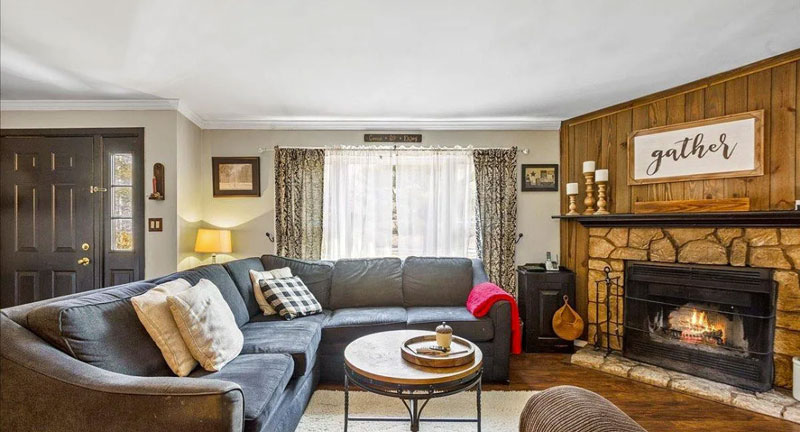 Nestled among tall pines with that quiet-you-can-hear feeling. Think “Upstate.” Think: fire pit, fresh snow, the smell of pine, and total peace — everything you imagined when you said, “Let’s move upstate.”
