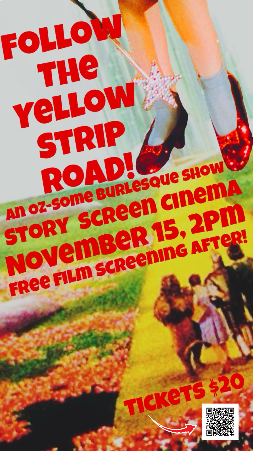 Road Join us for a 1-hour Wizard of Oz-Themed Burlesque Performance followed by a screening of “The Wizard of Oz”!!! Doors are at 1 PM, Performance at 2 PM, followed by film screening at 3 PM. $20 ticket includes both the Burlesque Show and Movie Screening! Tickets being sold directly by Soft Body Burlesque Productions.