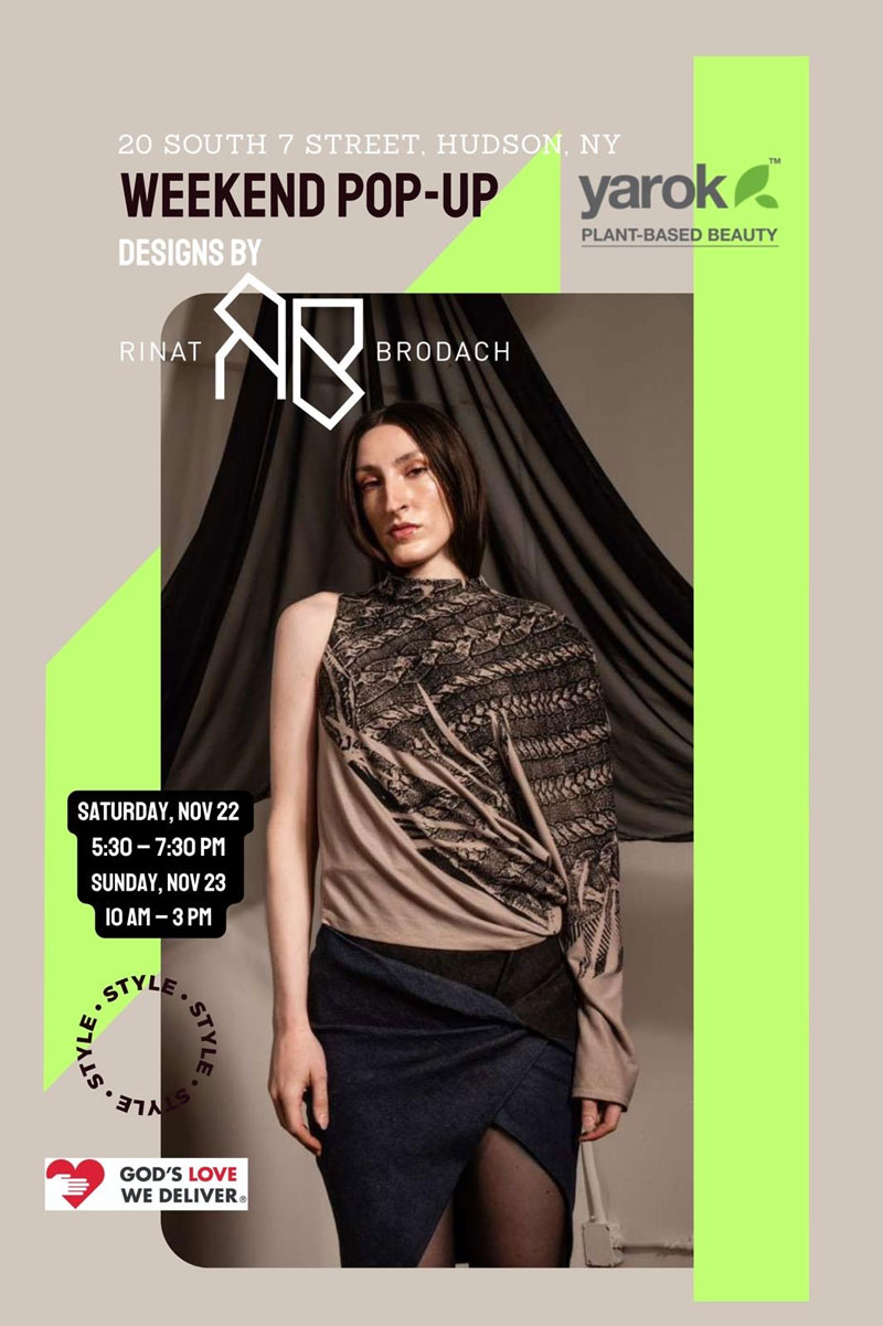 I’m Rinat Brodach, a NYC-based fashion designer (you might remember me from Amazon Prime’s “Making the Cut”) and founder of the label RINAT BRODACH. Mordechai and I share a deep love for creativity, sustainability, and community — and this event brings all of that together.